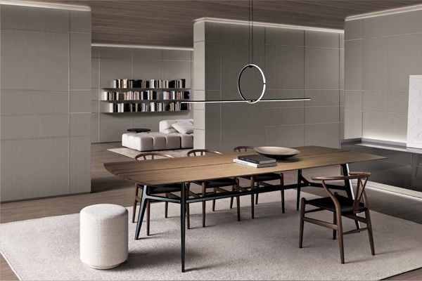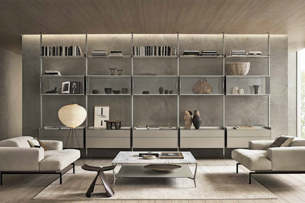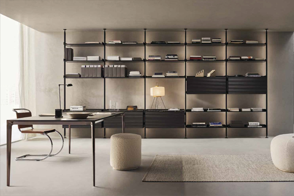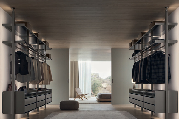 specializes in advanced systems for partitioning spaces and shaping interior architecture. Its comprehensive collection includes doors, sliding panels, shelving systems, walk-in wardrobes, and complementary furniture — a continuously expanding range that evolves in both form and function.